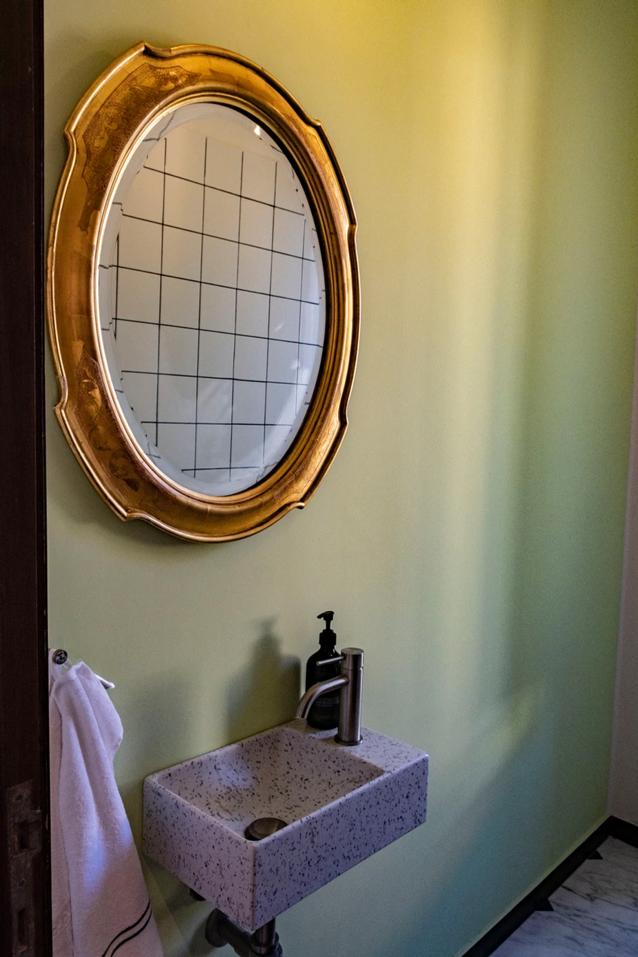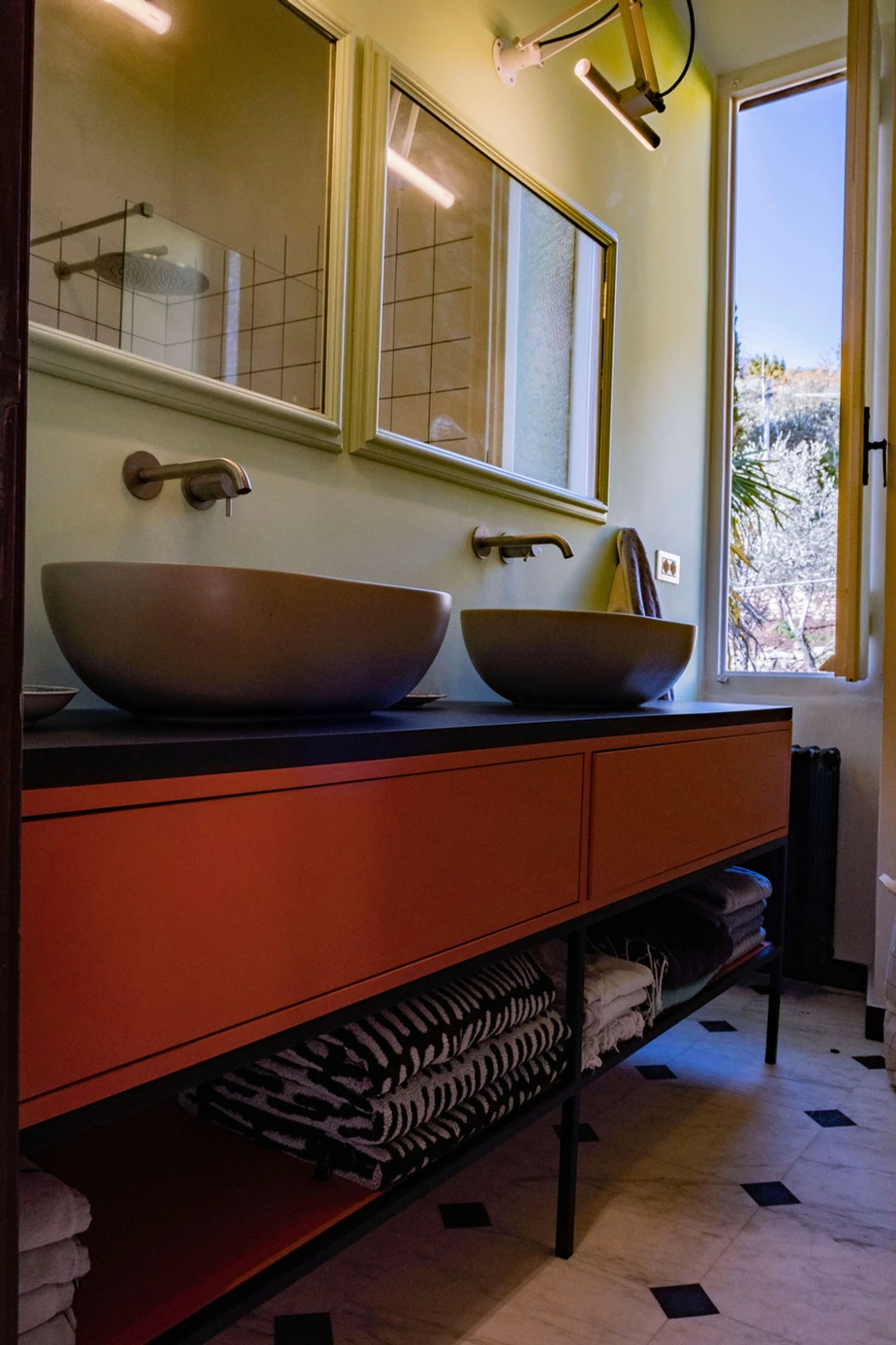 Il mobile attrezzato, estato realizzato su misura, gli specchi ripuliti e recuperati.