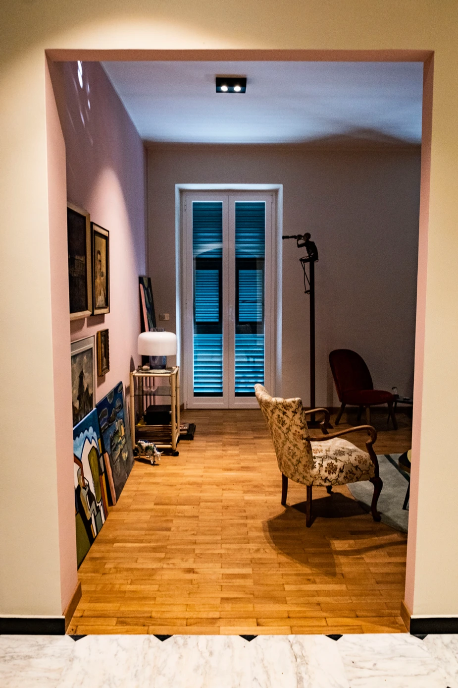 Insieme abbiamo deciso di mantenere i vecchi pavimenti e recuperare le porte ad arco, in legno scuro (noce), di non modificare le altezze con controsoffitti, rinnovare e recuperare alcuni elementi di arredo. Una via di mezzo tra una ristrutturazione e un restyling.